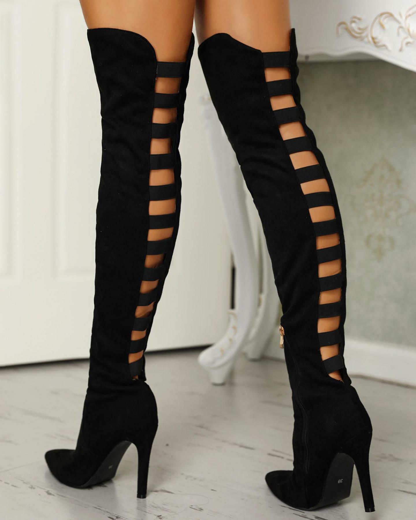 • Back Ladder Cutout Knee-high Stiletto Boots