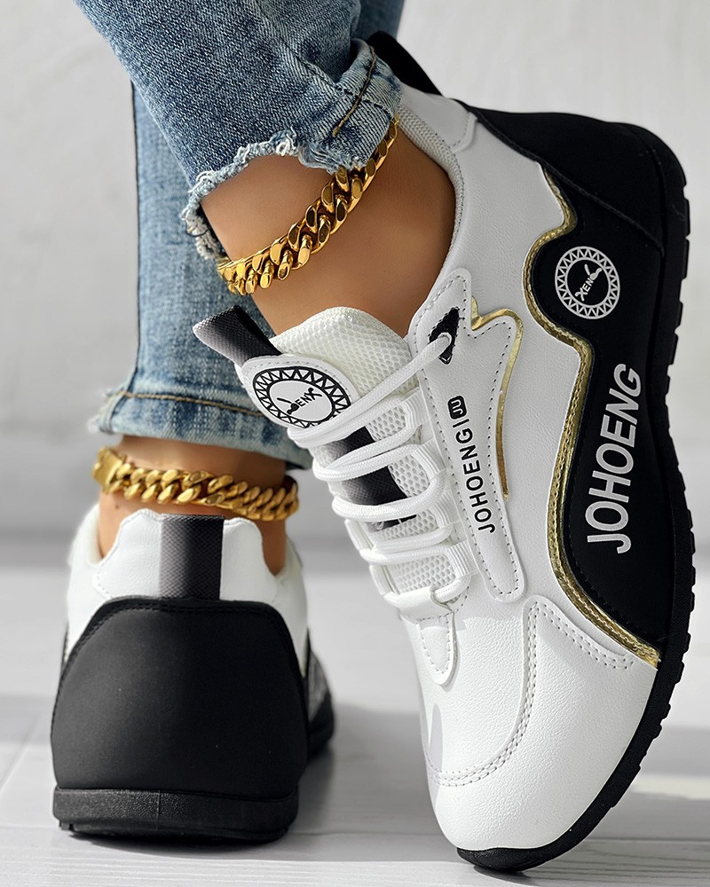 • Colorblock Letter Print Lace-up Platform Casual Sneakers