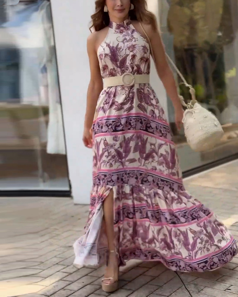 Product Name: Elegant Sleeveless Printed Dress(Without Belt)