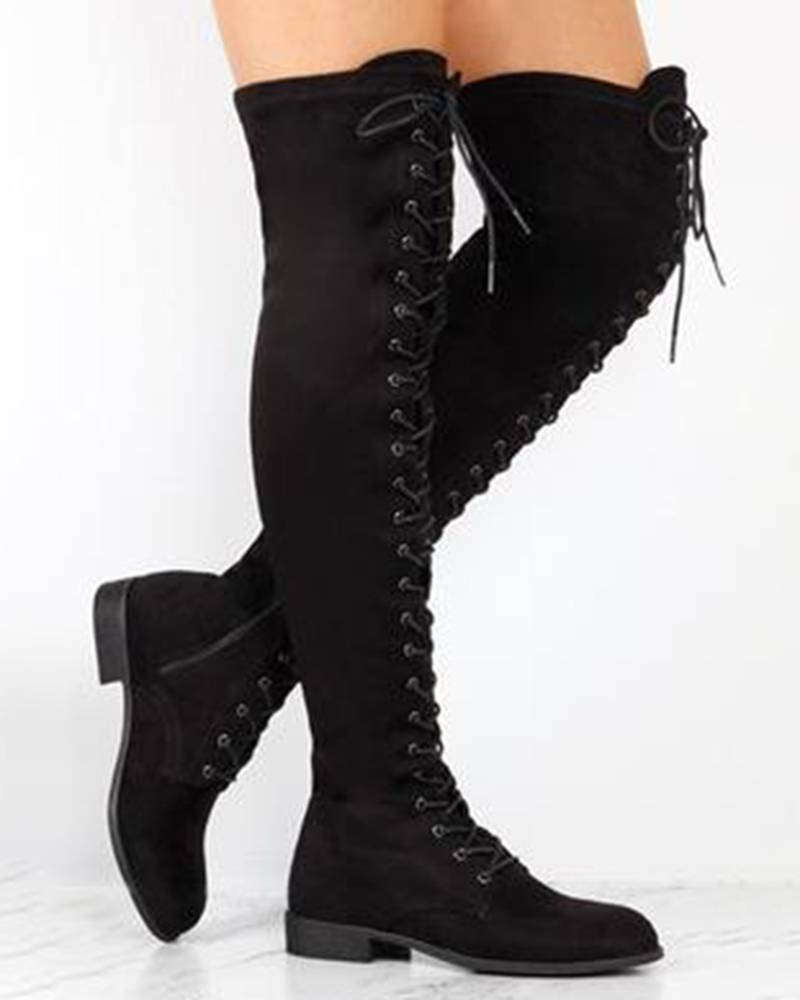 • Eyelet Lace-up Over The Knee Boots