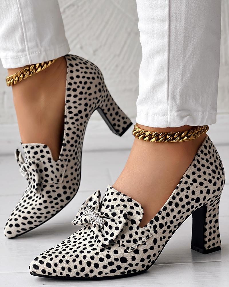 • Leopard Pattern Bowknot Decor Pumps