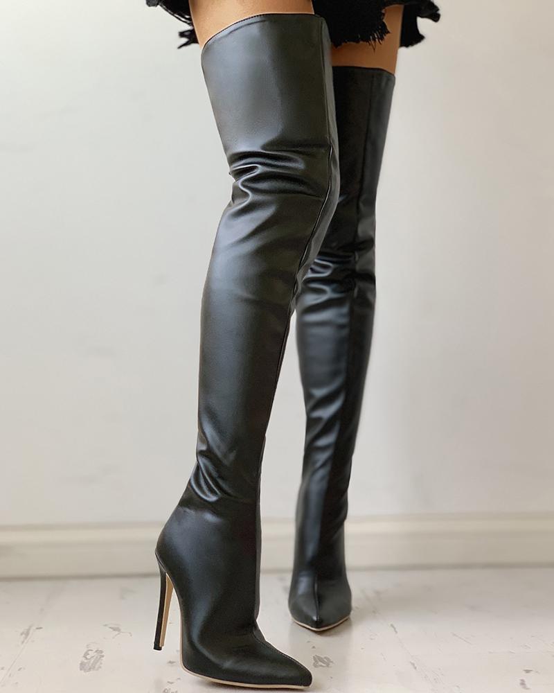 PU Zippper Thin Heeled Long Boots