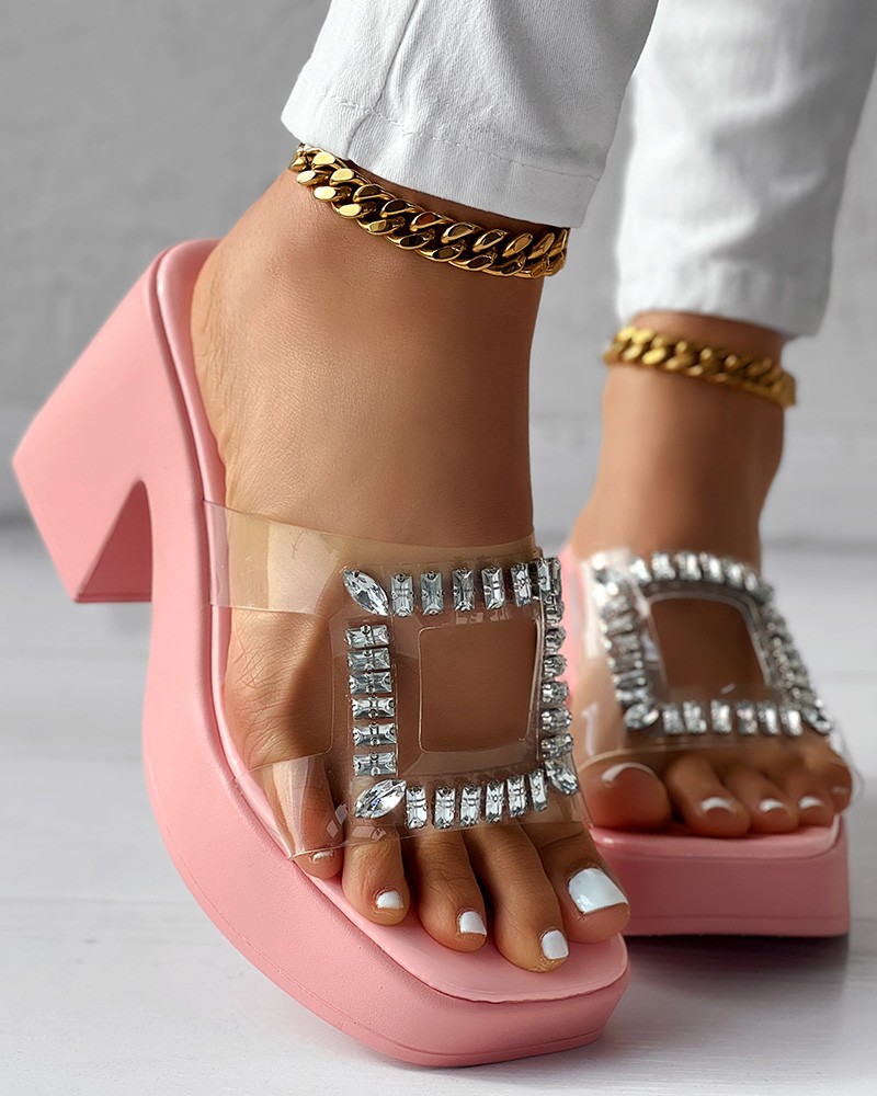 • Rhinestone Decor Clear Strap Chunky