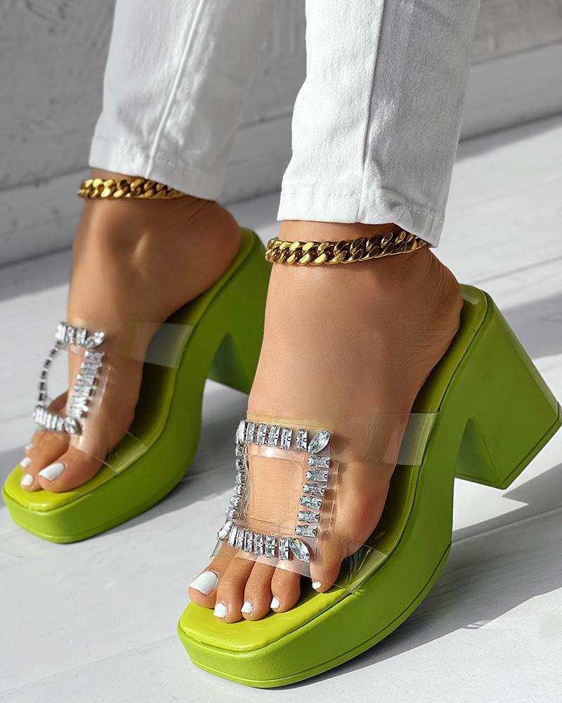 Rhinestone Decor Clear Strap Chunky